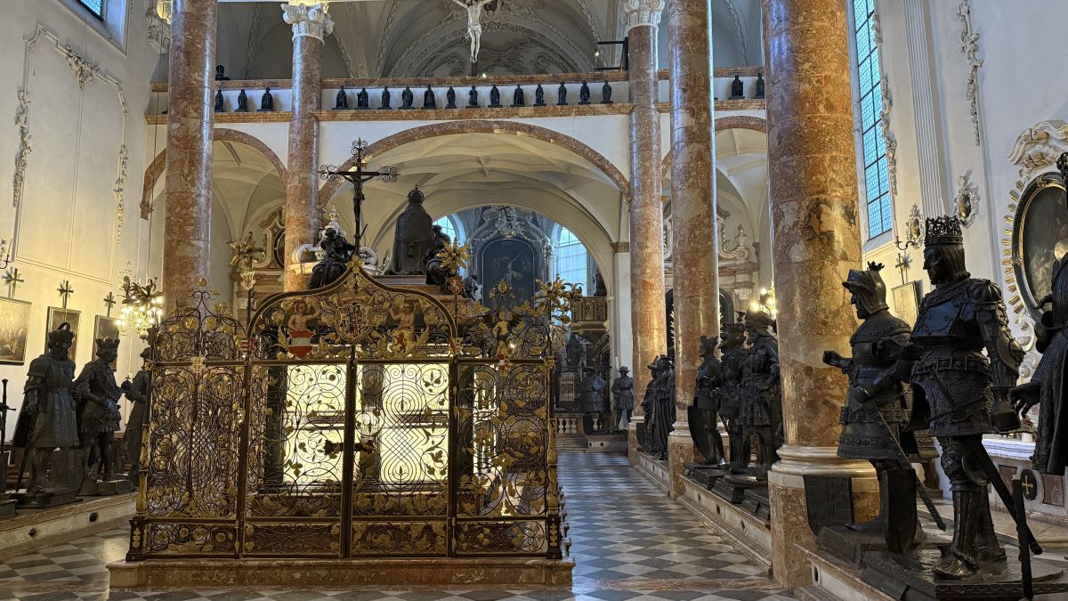 Berühmt sind weiters die 28 lebensgroßen, detailreich gefertigten Bronzestatuen, 20 Männer und acht Frauen, die Verwandte, Ahnen und Vorbilder Kaiser Maximilians I. zeigen. Sie gruppieren sich um den leeren, reich mit Marmorreliefs verzierten Sarkophag – Kaiser Maximilian I. wurde nämlich nicht in diesem eigens für ihn errichteten Grabmal beigesetzt, sondern in Wiener Neustadt.